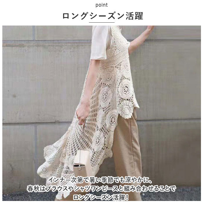 ・さらっと軽い着心地!繊細な透かし網デザインのバックロングベストが登場!