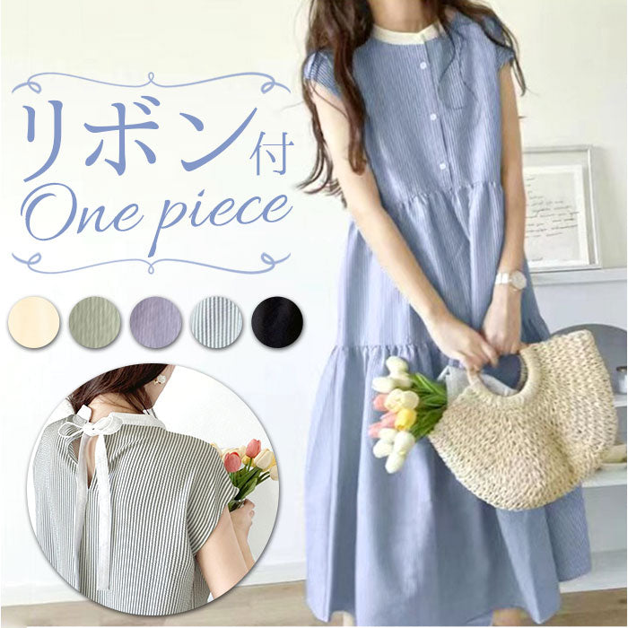 ワンピース レディース シャツワンピース 通販 ワンピ シャツワンピ ロングワンピース ロングワンピ フレアスカート バックリボン リボン 袖なし 袖無し そで無し かわいい 可愛い ロング