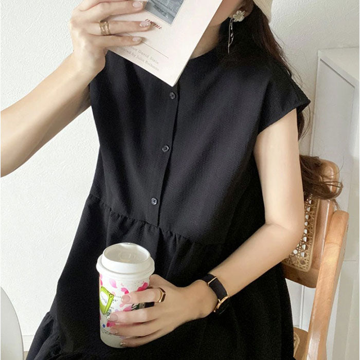 ・頭から被ってフロントのボタンを留め、バックリボンを結べばOK。旅先での着替えもスマート。