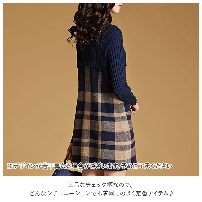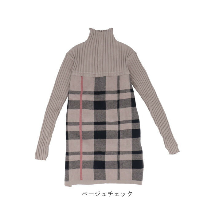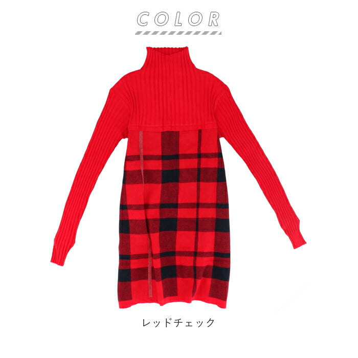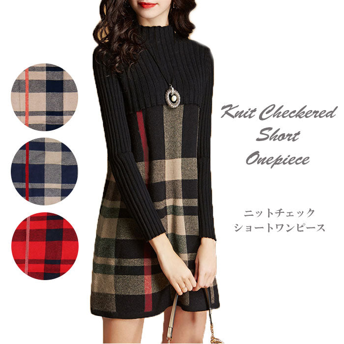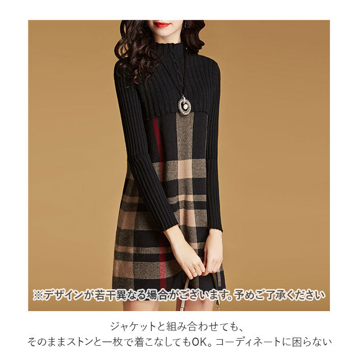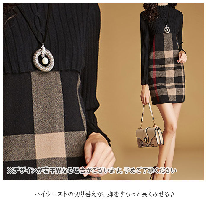 ワンピース レディース 冬 通販 秋冬 大人 長袖 ニット ミニ ミニワンピ 大人可愛い ミニワンピース ハイネック おしゃれ チェック ミニ丈 かわいい カジュアル ショート丈 タートルネック 切り替え