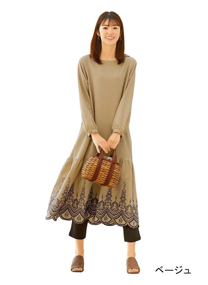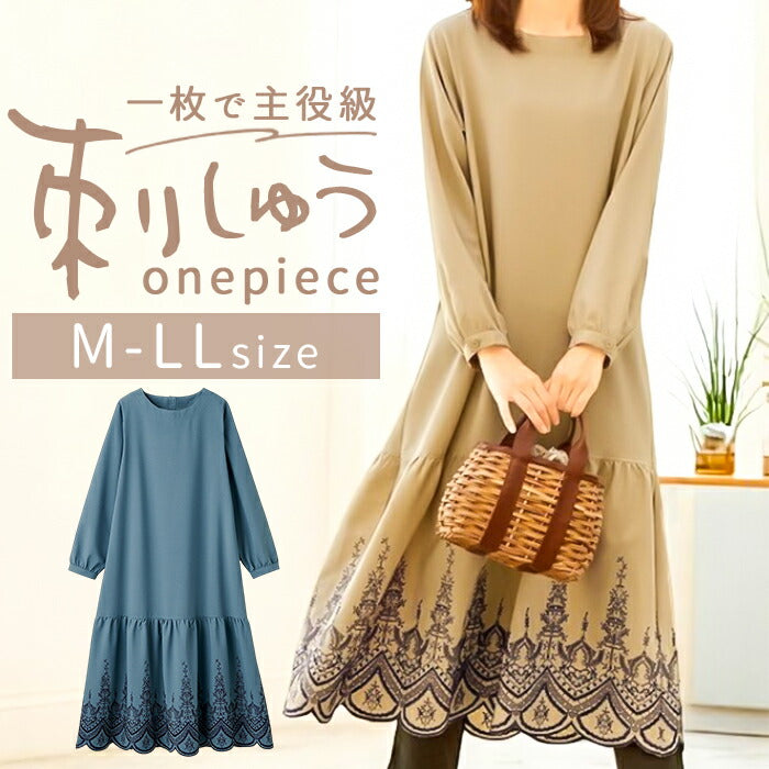 ワンピース 刺繍 レディース 961723 通販 ワンピ レディースワンピース 刺繍ワンピース 刺しゅうワンピース フレアスカート 切り替え 刺しゅう ティアード 着脱しやすい きれいめ