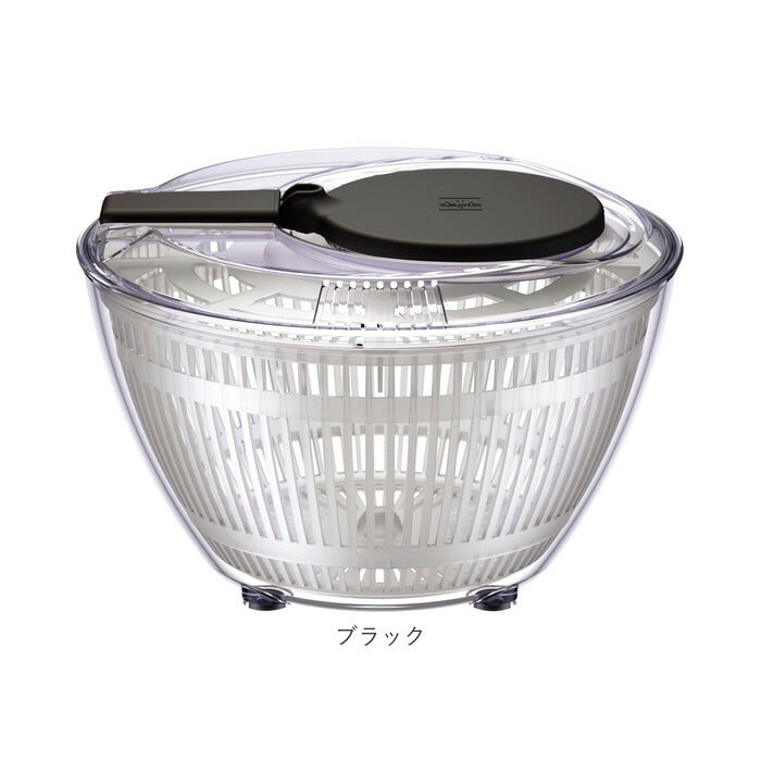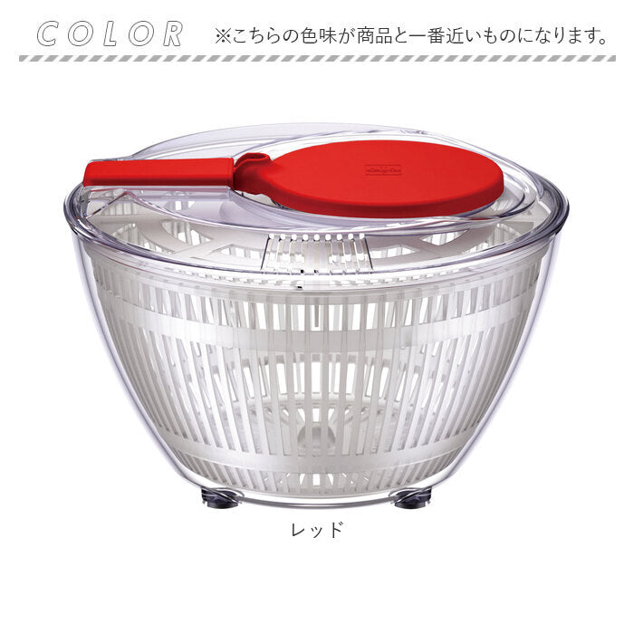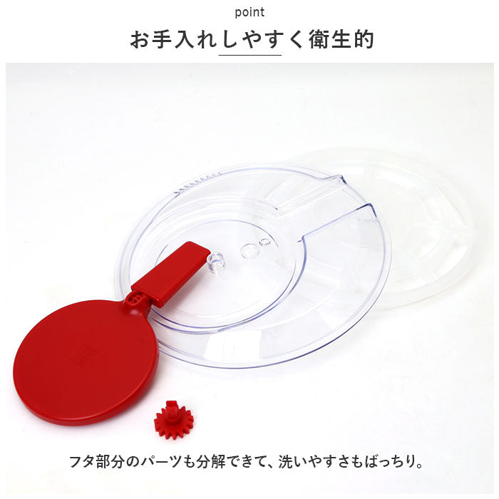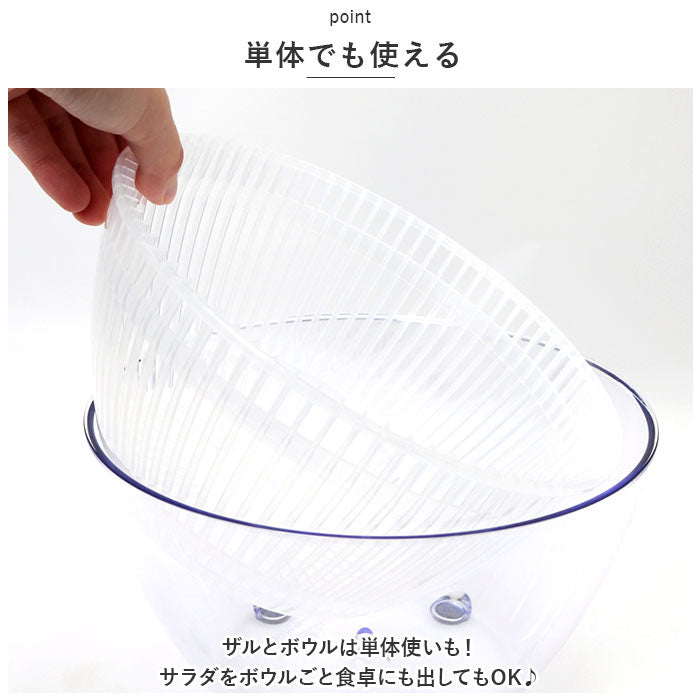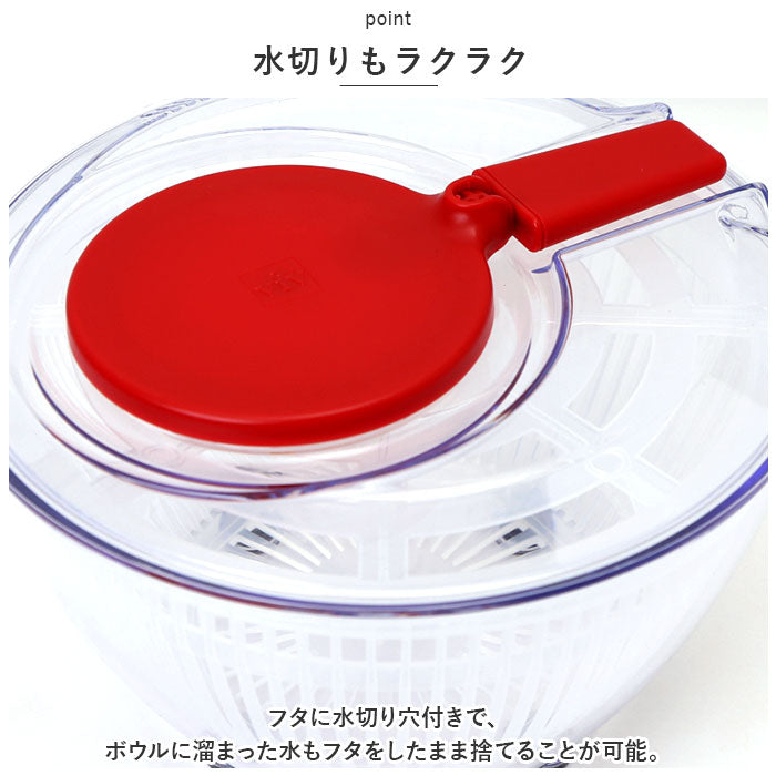 ・水洗いした野菜をザルに入れ、ボウルにセット。フタをして、ハンドルを握って回転させるだけ!