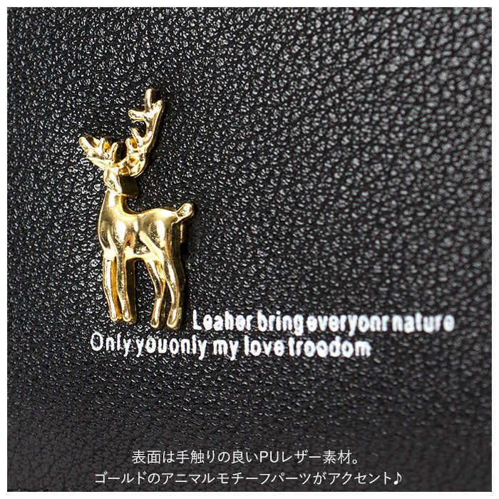 ・表面は手触りの良いPUレザー素材。ゴールドのアニマルモチーフパーツがアクセント♪