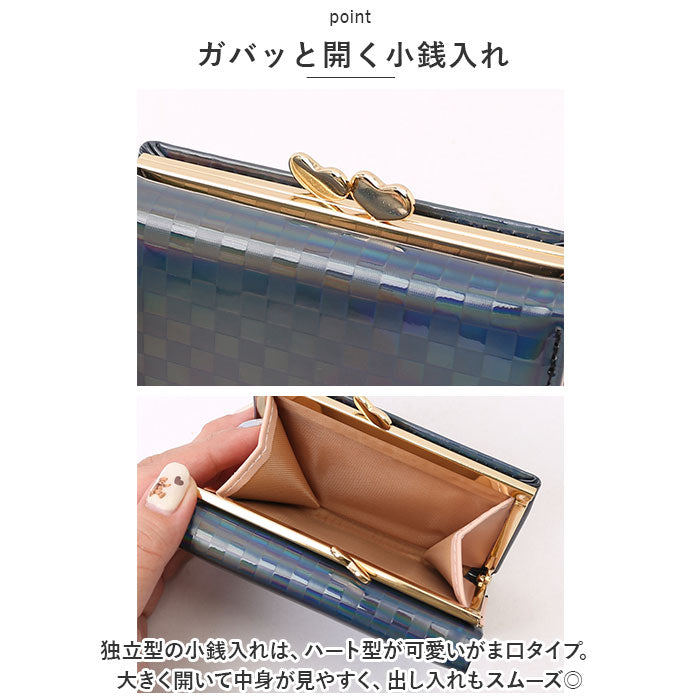 ・独立型の小銭入れは、ハート型が可愛いがま口タイプ。大きく開いて中身が見やすく、出し入れもスムーズ◎