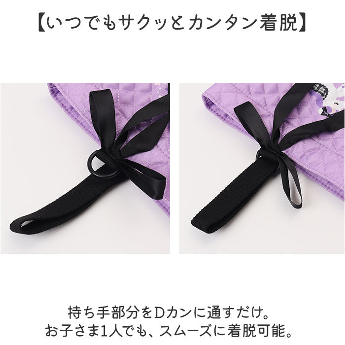 ・持ち手部分をDカンに通すだけ。お子さま1人でも、スムーズに着脱可能。