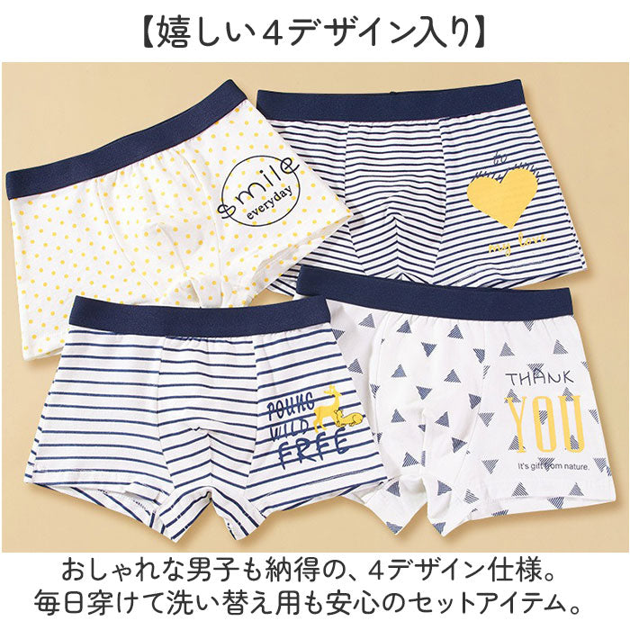 ・おしゃれな男子も納得の、4デザイン仕様。毎日穿けて洗い替え用も安心のセットアイテム。