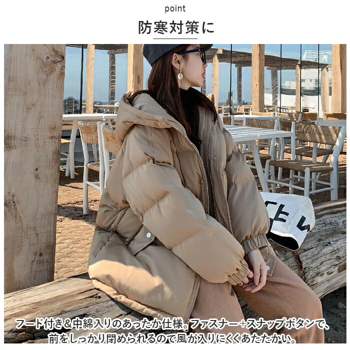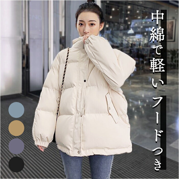 中綿ジャケット レディース 通販 ジャケット 軽量 上着 フード ジャンバー ジャンパー 厚手 ふんわり 暖かい あたたかい あったか 中綿入り PUレザー 防寒 防風 冬 アウター おしゃれ