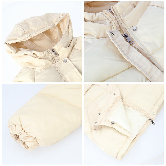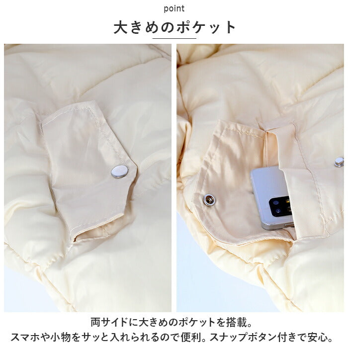 ・フード付き&中綿入りのあったか仕様。ファスナー+スナップボタンで、前をしっかり閉められるので風が入りにくくあたたかい。