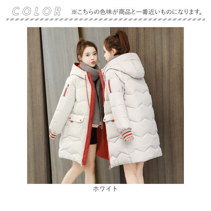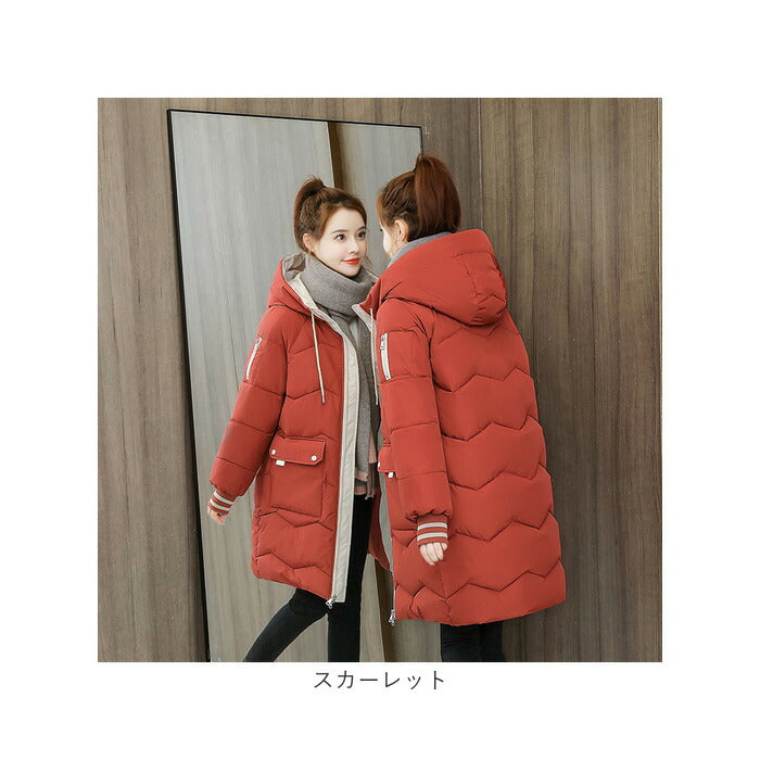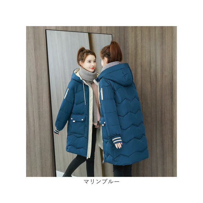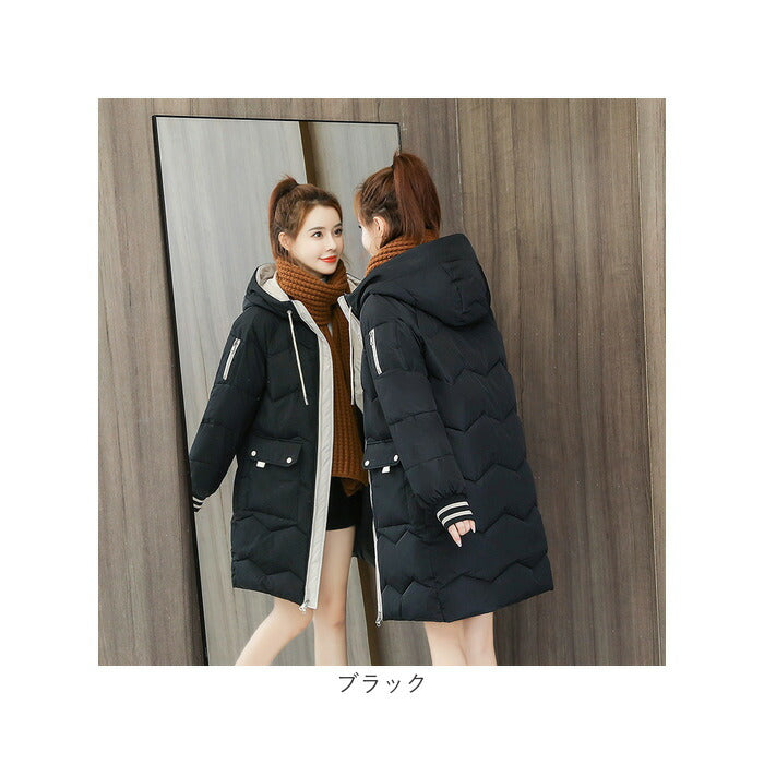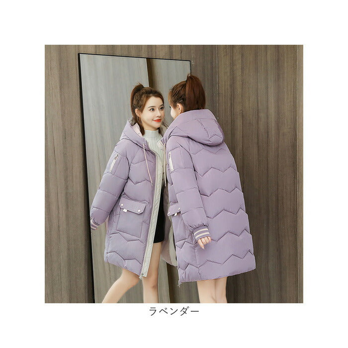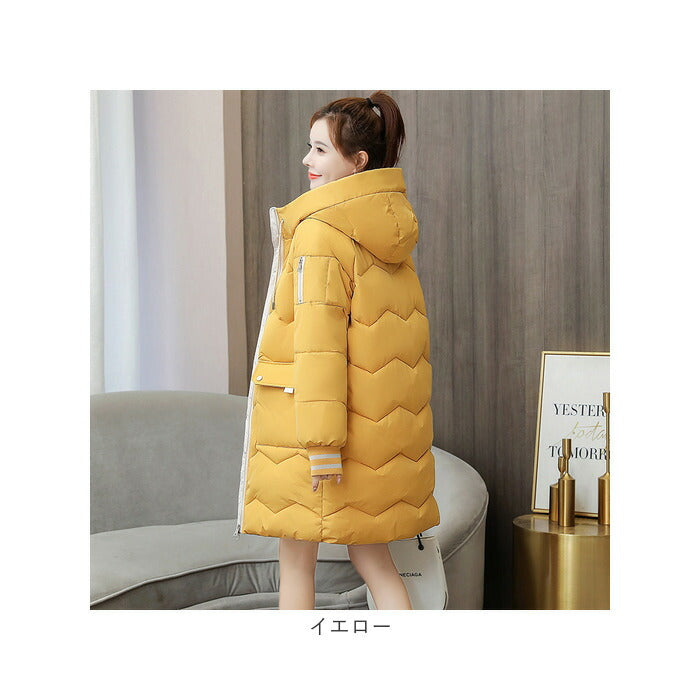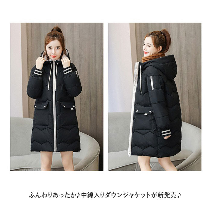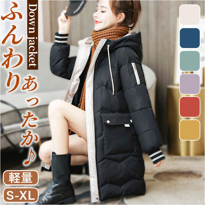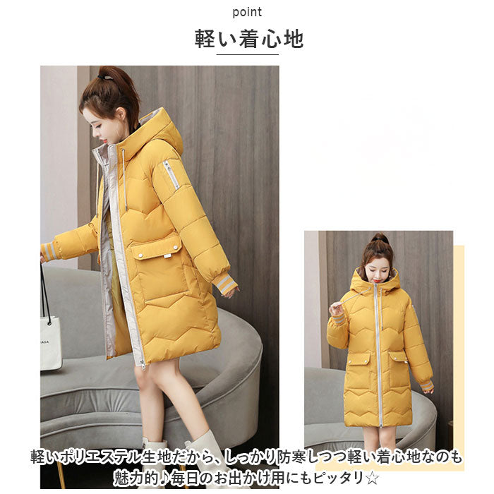 中綿 コート レディース 通販 アウター ジャケット 上着 ロングコート ミディアム丈 軽量 防寒 フード付 シンプル 無地 通勤 通学 旅行 お出かけ カジュアル 暖かい 冬 スタンドカラー