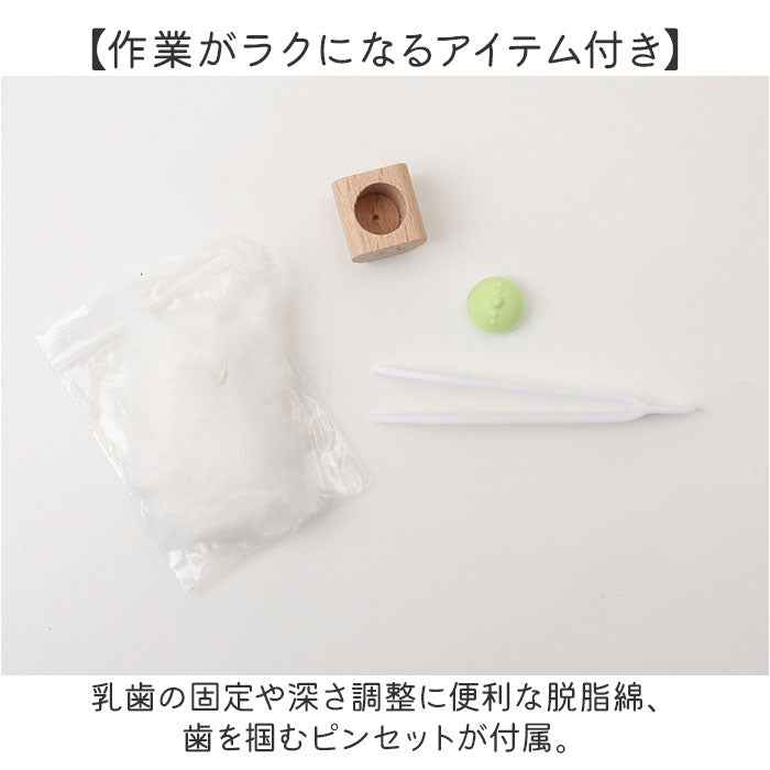 ・乳歯の固定や深さ調整に便利な脱脂綿、歯を掴むピンセットが付属。