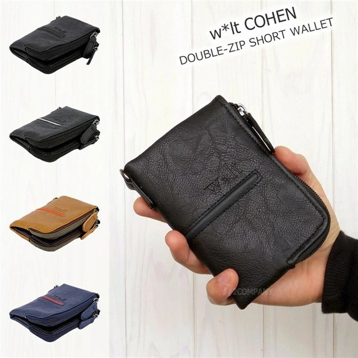 二つ折り財布 メンズ ファスナー 通販 財布 二つ折り おしゃれ シンプル 合皮 合成皮革 小銭入れあり レディース サイフ ダブルジップ ショートウォレット ブランド w*lt walt ウォルト COHEN コーエン 335106a メンズ財布