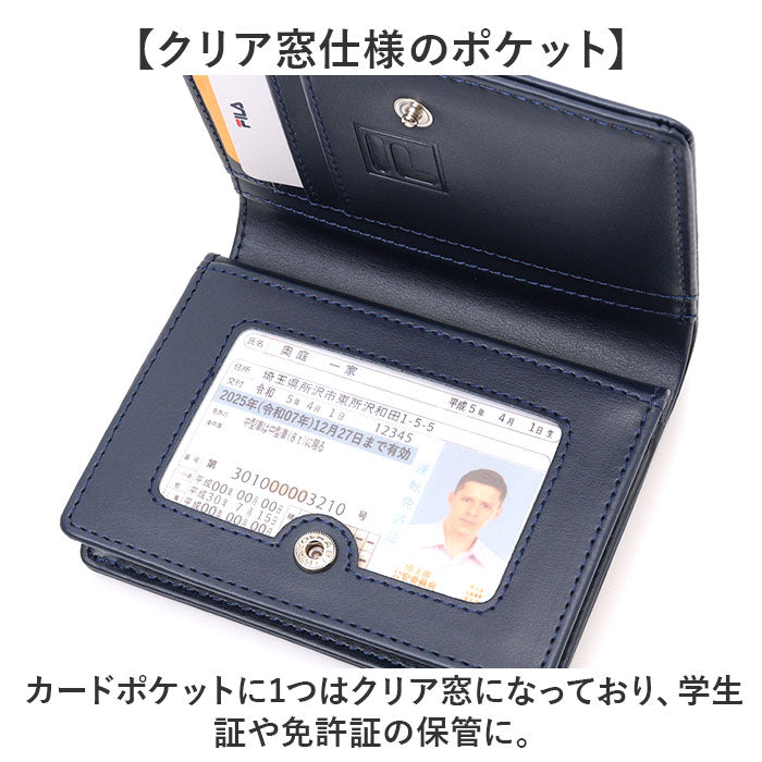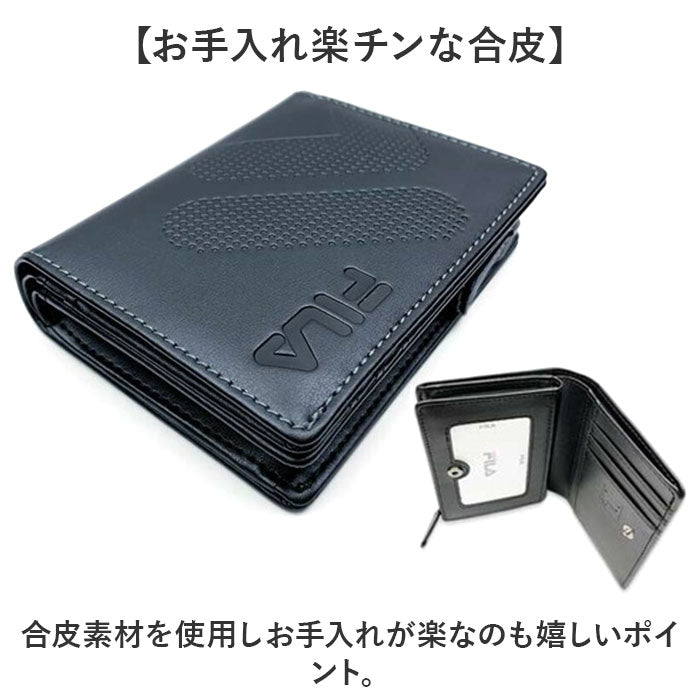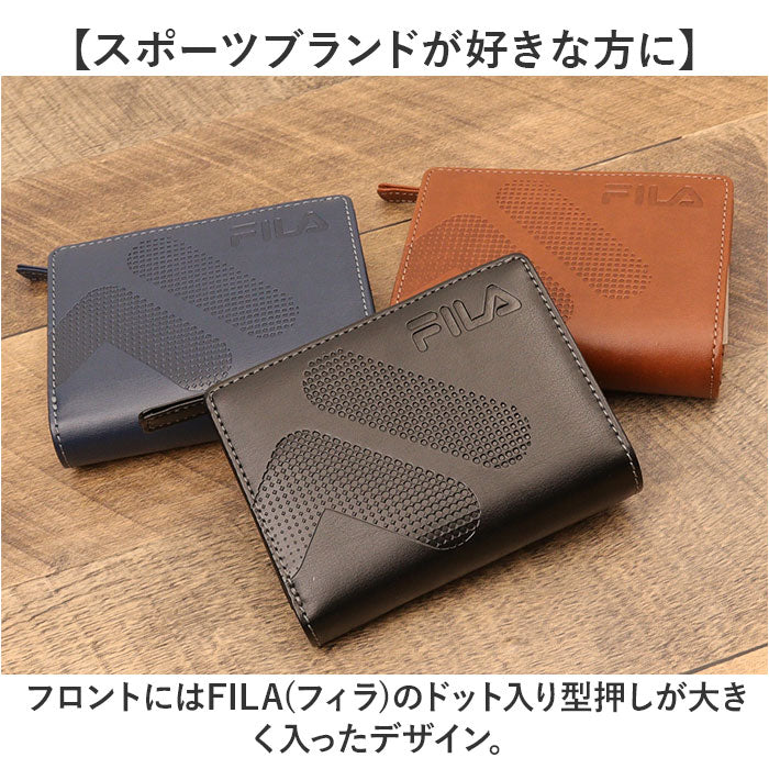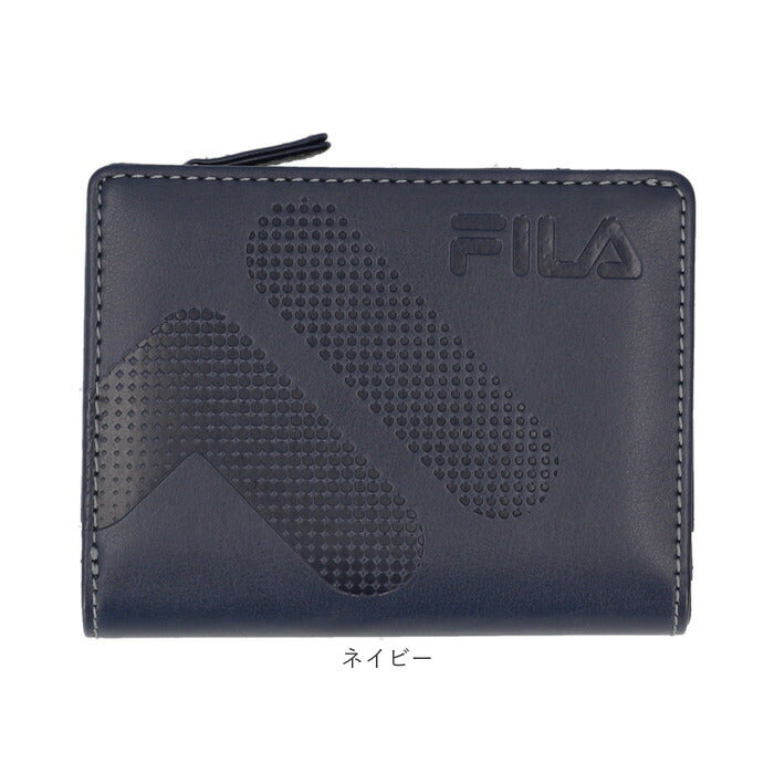 FILA ドットロゴ型押し ファスナー&パスケース付き 2つ折り財布