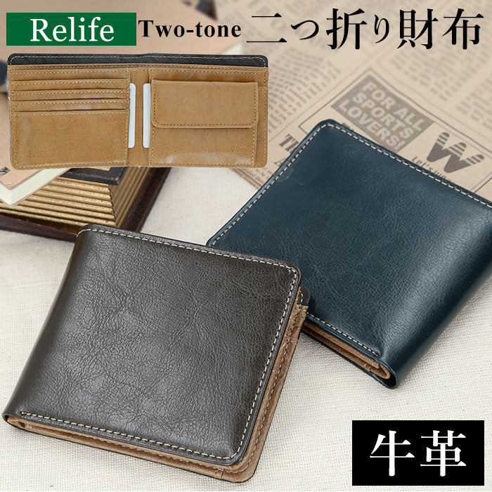 二つ折り財布 メンズ 通販 財布 レザー 表 牛革 本革 二つ折り 札入れ 折りたたみ財布 おしゃれ シンプル 無地 ツートン バイカラー W-347 小銭入れ付き 小銭入れあり ケース