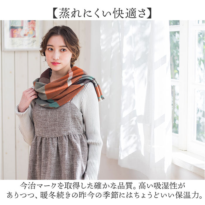 ・敏感肌の方でも安心して使えるソフトな肌触りの起毛コットンマフラー。安心の日本製。