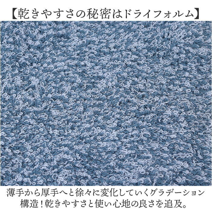 ・薄手から厚手へと徐々に変化していくグラデーション構造!乾きやすさと使い心地の良さを追及。