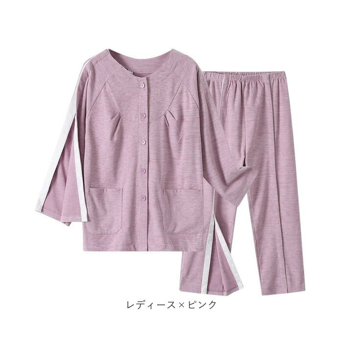 介護用パジャマ 上下セット 通販 長袖 パジャマ 男性 女性 前開き セットアップ 高齢者 シニア レディース メンズ 入院着 ルームウェア 寝間着 ナイトウェア 施設 長ズボン ロングパンツ