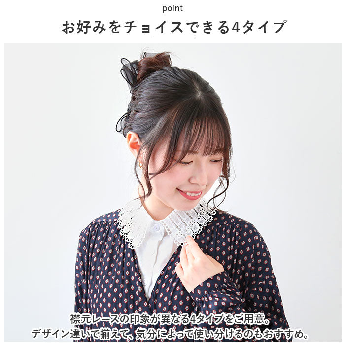 ・襟元レースの印象が異なる4タイプをご用意。デザイン違いで揃えて、気分によって使い分けるのもおすすめ。