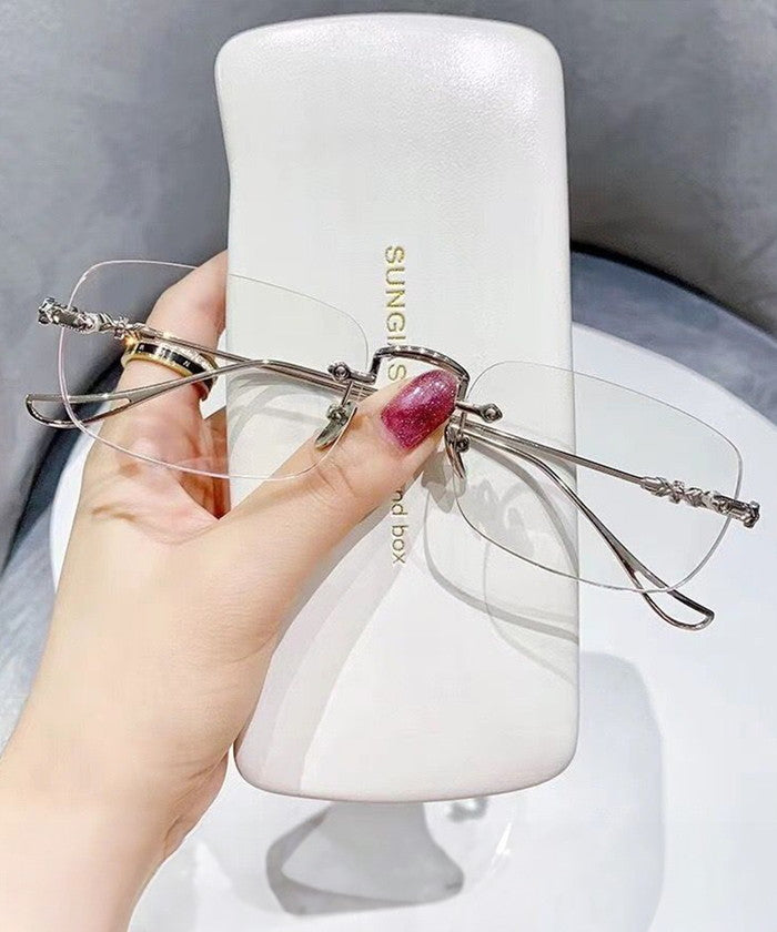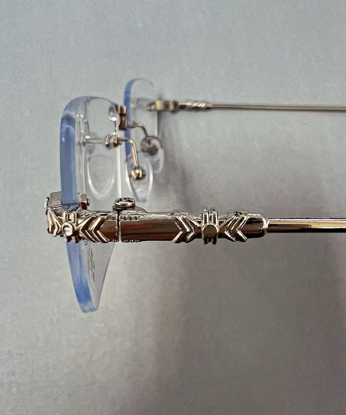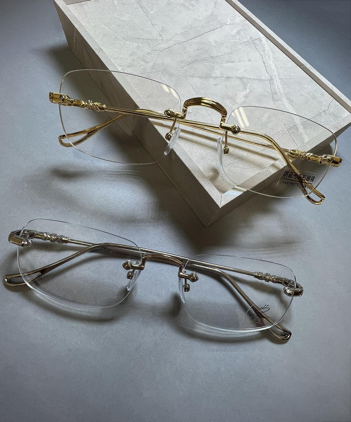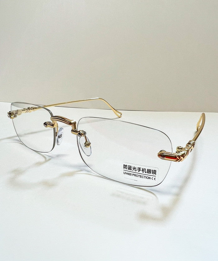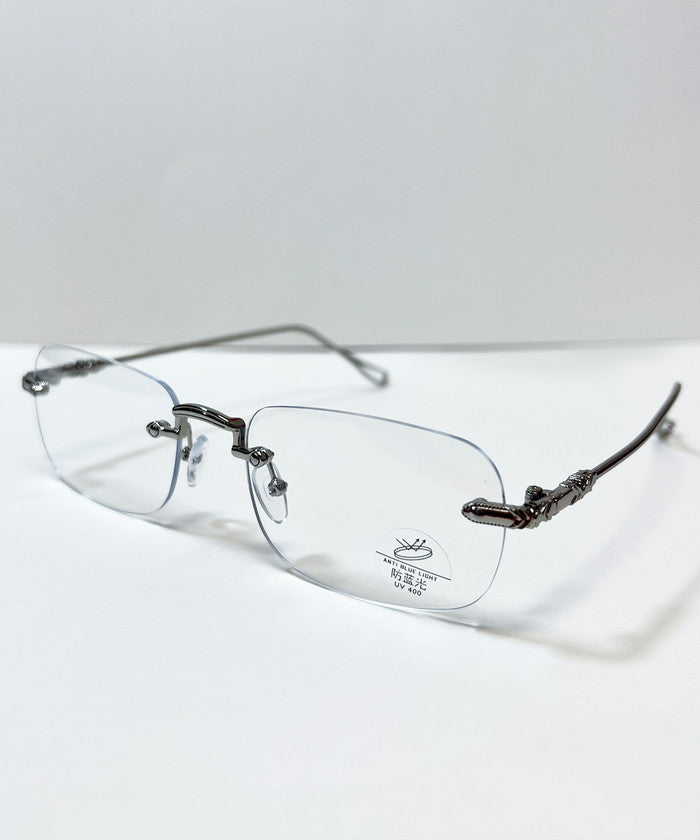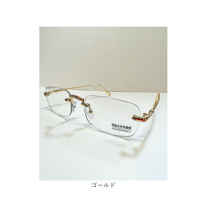 ・フレームがないスタイリッシュな印象のスクエア型クリアメガネ。