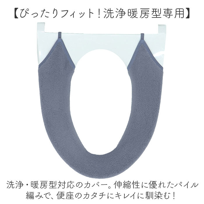 ・洗浄・暖房型対応のカバー。伸縮性に優れたパイル編みで、便座のカタチにキレイに馴染む!