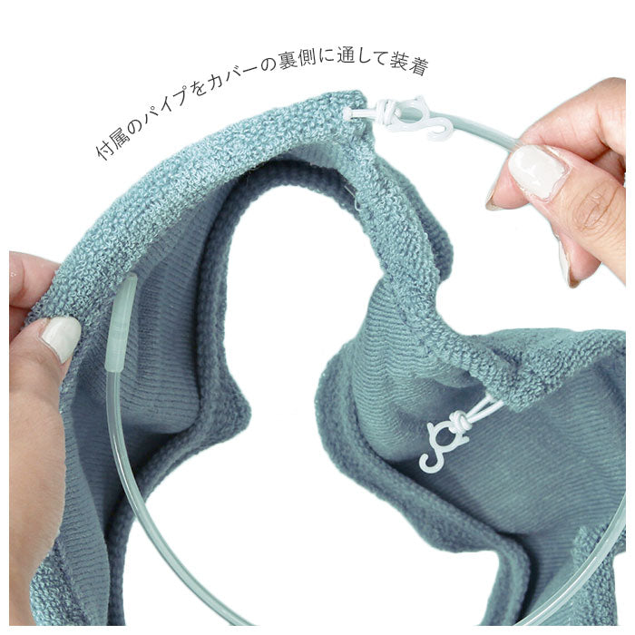 ・付属のパイプをカバーの裏側に通して装着するタイプの便座カバー。