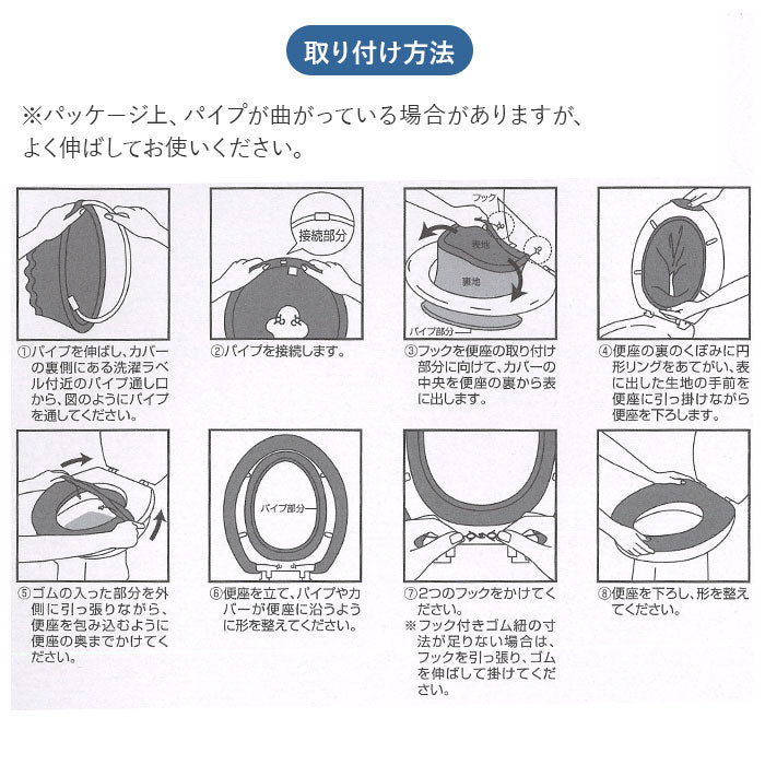 ※乾燥機(タンブル乾燥)、アイロンのご使用はお避けください。(縮んで便座に取り付けられない原因になります。)