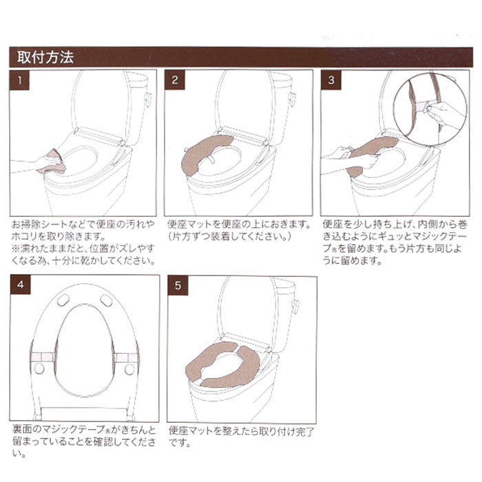 ・便座に乗せて、裏面の面ファスナーで留めるだけ。伸縮バンド付きでさらにフィット!