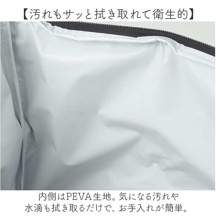 ・内側はPEVA生地。気になる汚れや水滴も拭き取るだけで、お手入れが簡単。