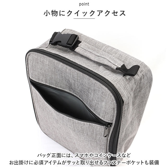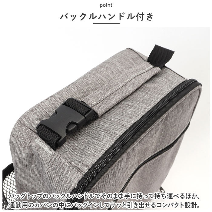 ・バッグトップのバックルハンドルでそのまま手に持って持ち運べるほか、通勤用のカバンの中にバッグインしてサッと引き出せるコンパクト設計。