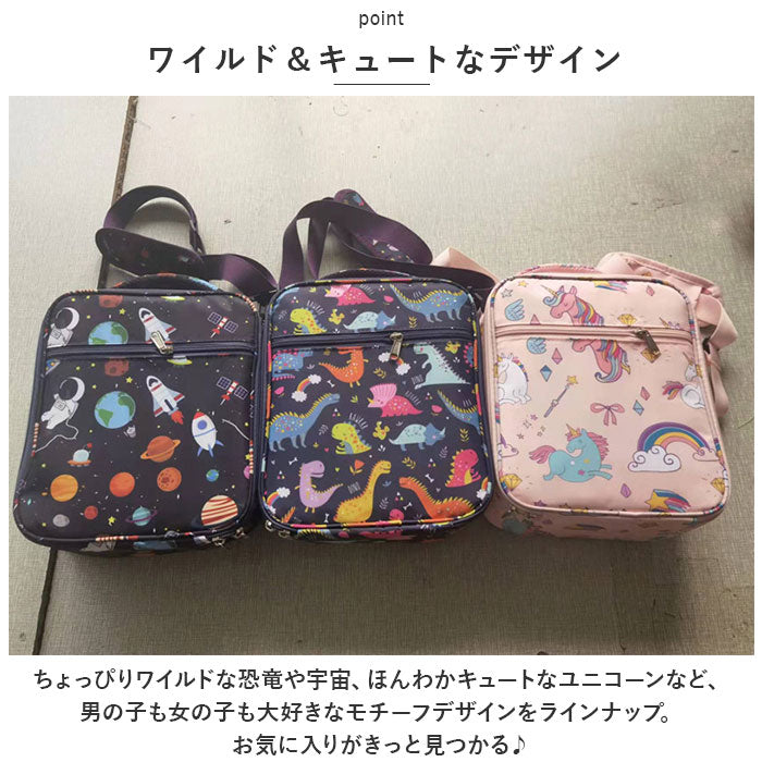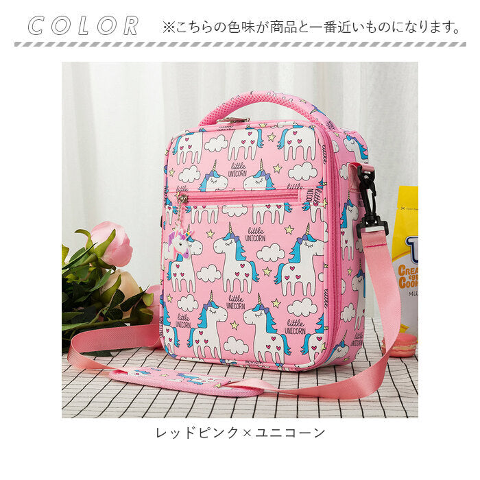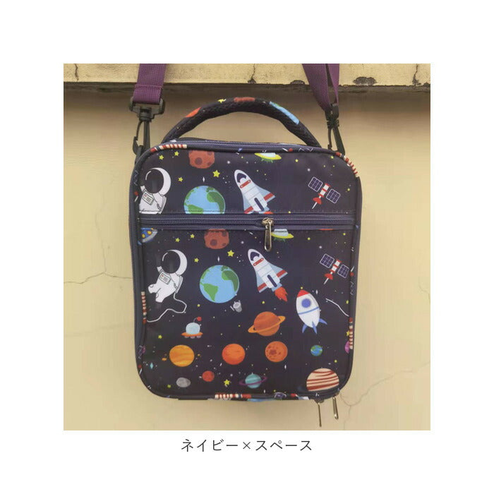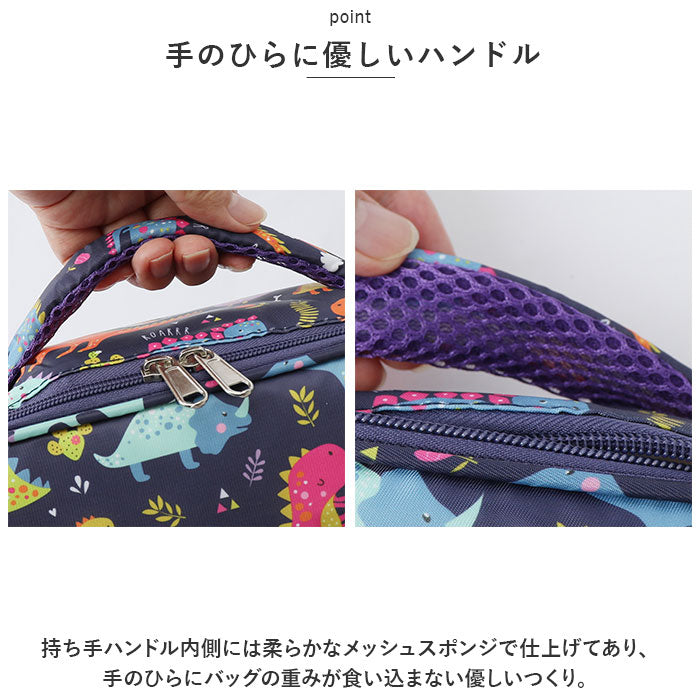 ・学校のお弁当用のランチバッグにはもちろん、遠足やピクニックなどアウトドアにもラクラク持ち運べる肩パッド付のショルダーベルトが付属。