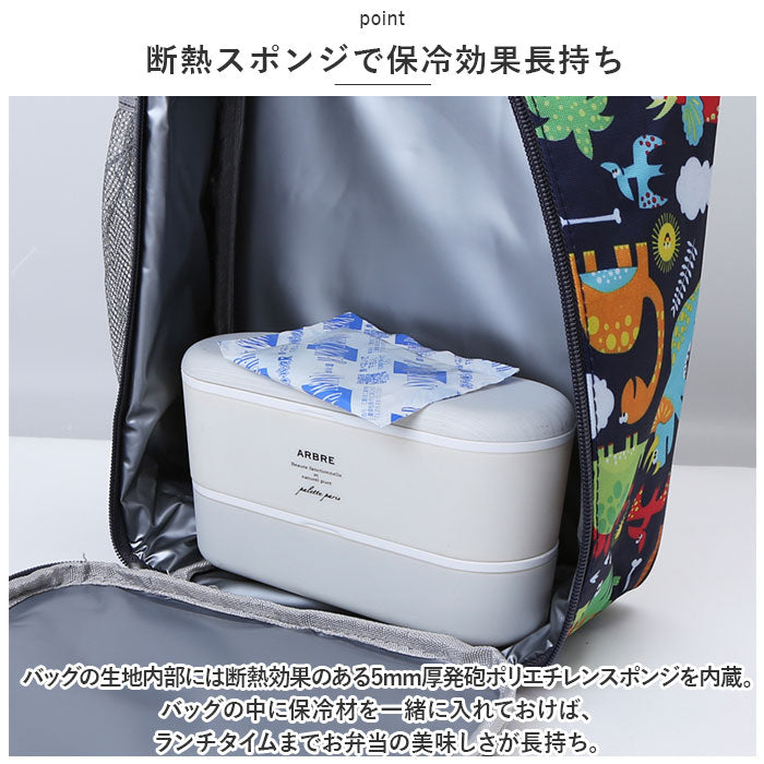 ・バッグの生地内部には断熱効果のある発砲ポリエチレンスポンジを内蔵。内側のメッシュポケットに保冷材を一緒に入れておけば、ランチタイムまでお弁当の美味しさが長持ち。
