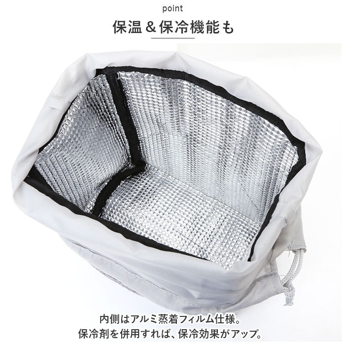 ・内側はアルミ蒸着フィルム仕様。保冷剤を併用すれば、保冷効果がアップ。