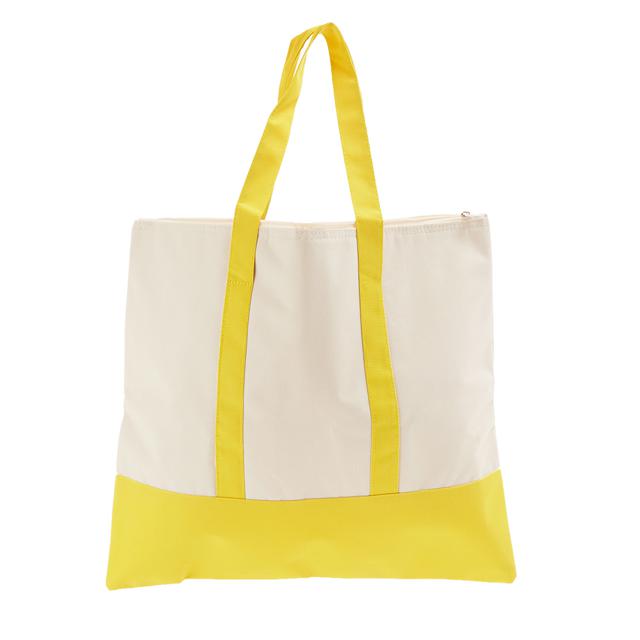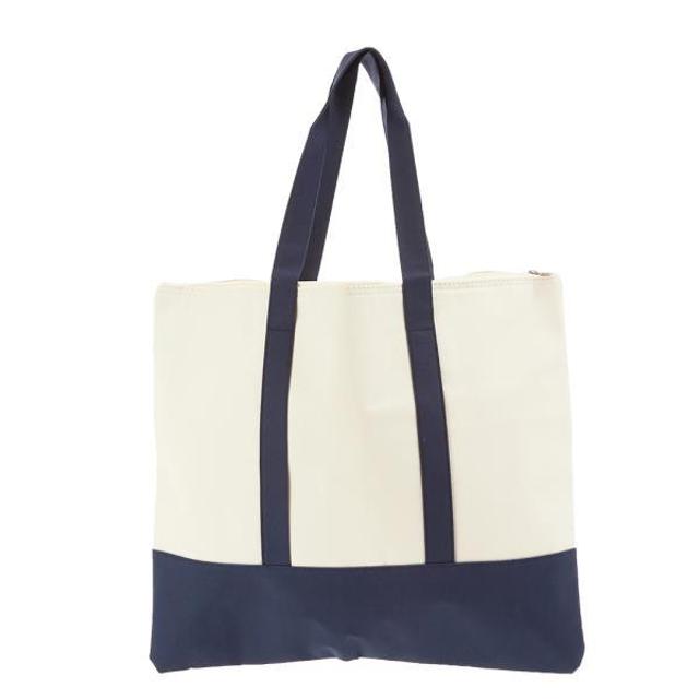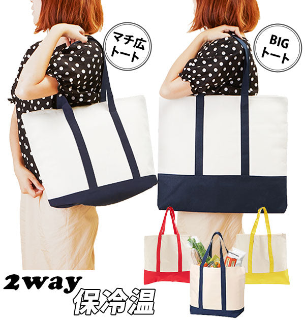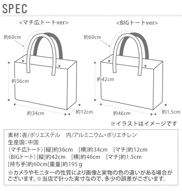 大きなサイズの保温保冷トートバッグです。バッグ内部のスナップボタンを留めるとマチ広トートバッグに変身!裏側はアルミフィルムが貼ってあり、内部の温度を保ちます。お買い物にもお出かけにも便利なサイズです。