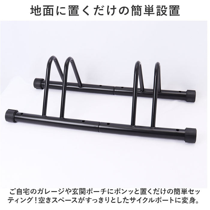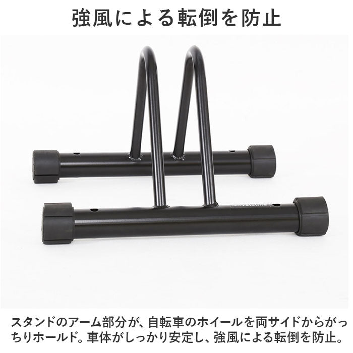 ・車輪をしっかりホールドして、強い風でも倒れない!地面に置くだけでスグに使える「サイクルスタンド(2台用)」が新登場。