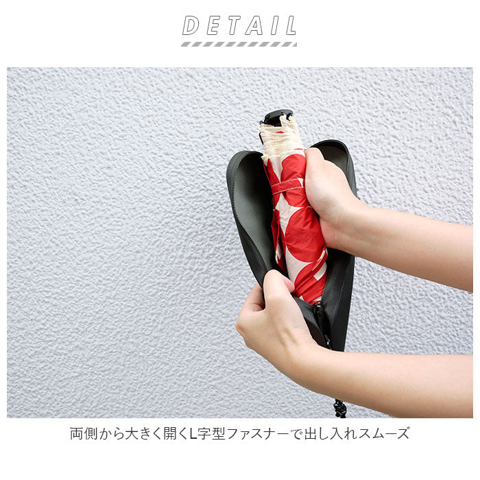・両側から大きく開くL字型ファスナーで、折りたたみ傘の出し入れがスムーズ。
