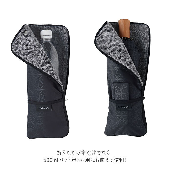・折りたたみ傘だけでなく、500mlペットボトル用ポーチにも使えて便利!冷たい飲み物についた水滴もぐんぐん吸収するので、カバンの中に安心して収納できる!