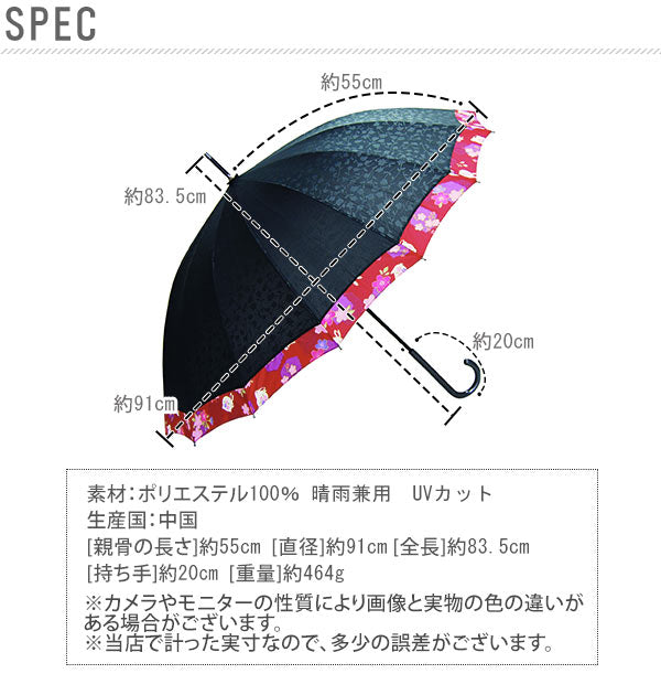 UVカット加工、防水・撥水加工が施された丈夫な16本骨の長傘♪