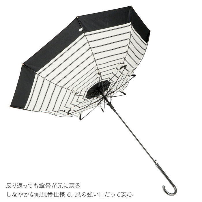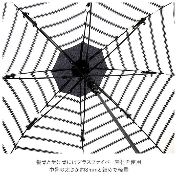 ・親骨と受け骨にはグラスファイバー素材を使用。反り返っても傘骨が元に戻る、しなやかな耐風骨仕様で、風の強い日だって安心。