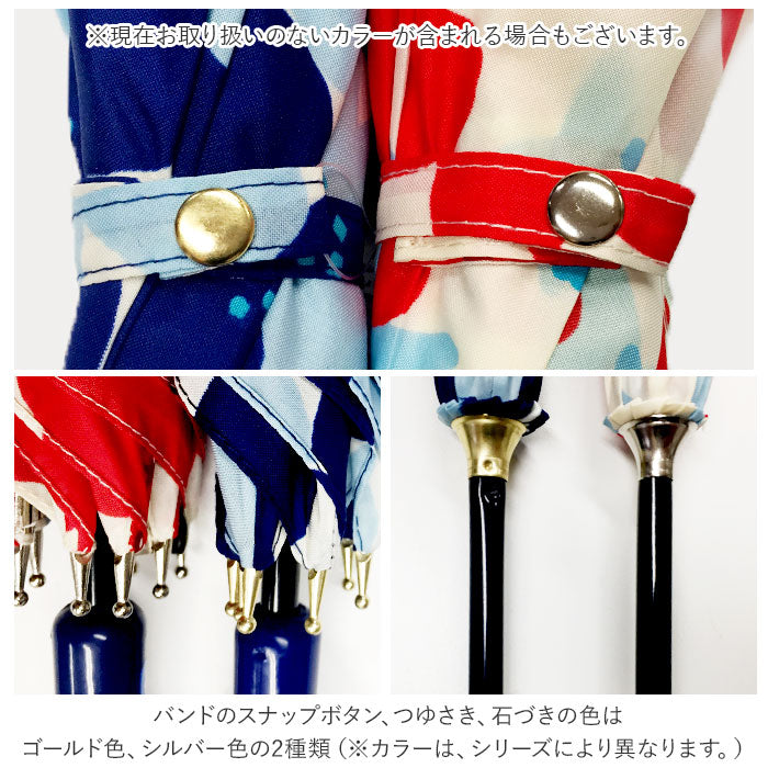 ・滑らかな手触りの手元ハンドルは、傘を持つ指先をよりたおやかに演出する華奢なフォルム。(※ハンドルの色味は、カラーにより異なります。)