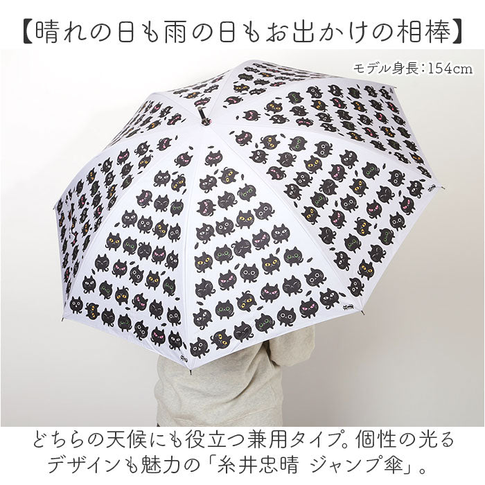 傘 レディース 晴雨兼用 通販 糸井忠晴 グッズ 58cm ジャンプ傘 長傘 雨傘 日傘 晴雨兼用傘 ワンタッチ 8本骨 かさ グラスファイバー骨 丈夫 UVカット 紫外線 女の子 おしゃれ ねこ 猫