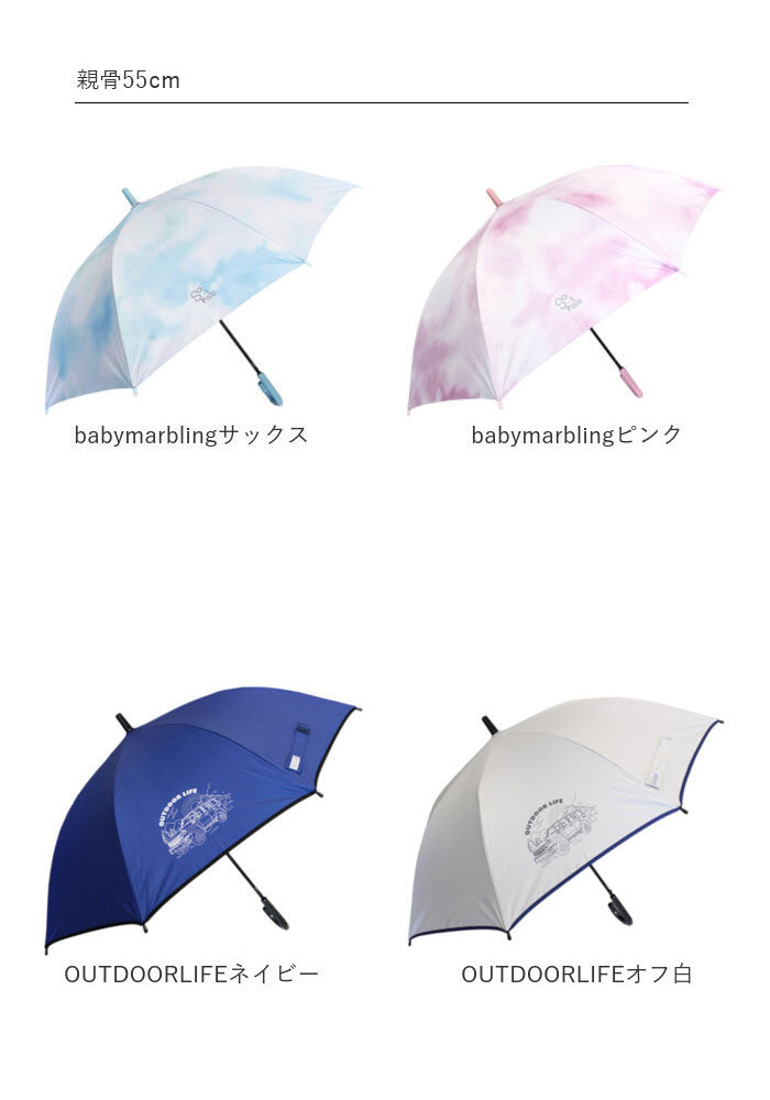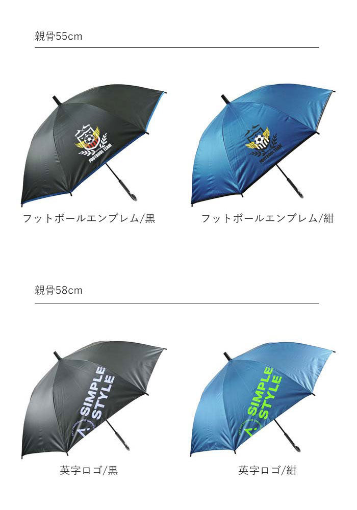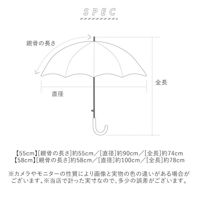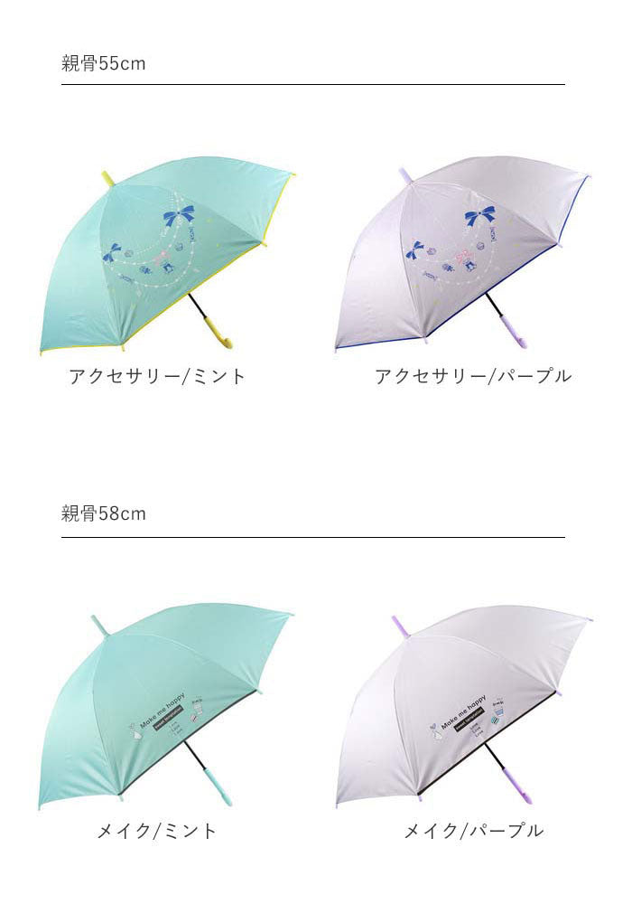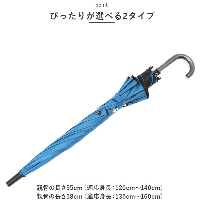 ・お子さまの身体の成長に合わせて選べる!親骨の長さ55cm(適応身長:120cm〜140cm)と、親骨の長さ58cm(適応身長:135cm〜160cm)の2タイプ。