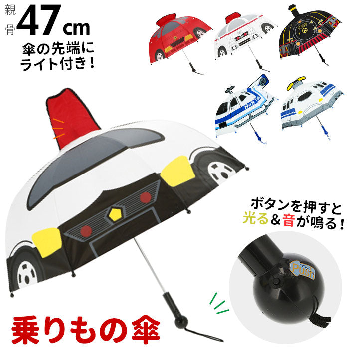 傘 子供用 男の子 通販 キッズ 子供 こども 47センチ 47cm かわいい 乗り物 のりもの 透明窓 1コマ 長傘 雨傘 光る ライト付き 音が鳴る サウンド付き かっこいい 幼稚園 保育園 年少 年中 年長 UFO 恐竜 ユニコーン パトカー 消防車 救急車 子ども傘