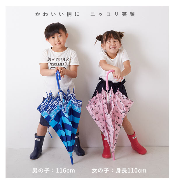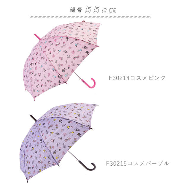 ポップでかわいい傘で、雨の日もスキップしてお出かけできそう!ガールズにオススメのリボンやコスメ柄、アクティブなボーイズ向けのボーダーブルーやスターグリーン柄など、クラスのお友達の傘とは一味違う、キッズに人気のスタイリッシュな柄を揃えました。軽くて丈夫なグラスファイバー骨を採用し、強い風にもよくしなるので安全。キッズが持ち運ぶのに適した軽量設計なのも嬉しいですね。安全つゆさきには光る反射テープ付き(※)で、雨の日の薄暗い日の通学も安心して送り出せそうです。荷物で片手がふさがっている時にも片手で簡単に開けるワンタッチ式で、デザイン性だけでなく安全性にも配慮されたキッズに優しい傘です。親骨の長さ55cmと58cm、2種類のサイズ展開で、兄弟・姉妹でお揃いにするのも素敵ですね。