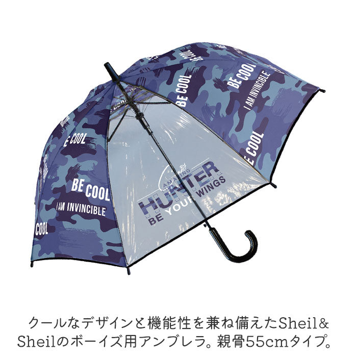 ・男のコらしさがキラッと光る☆クールなデザインと機能性を兼ね備えたSheil&Sheilのボーイズ用アンブレラ。親骨55cmタイプ。