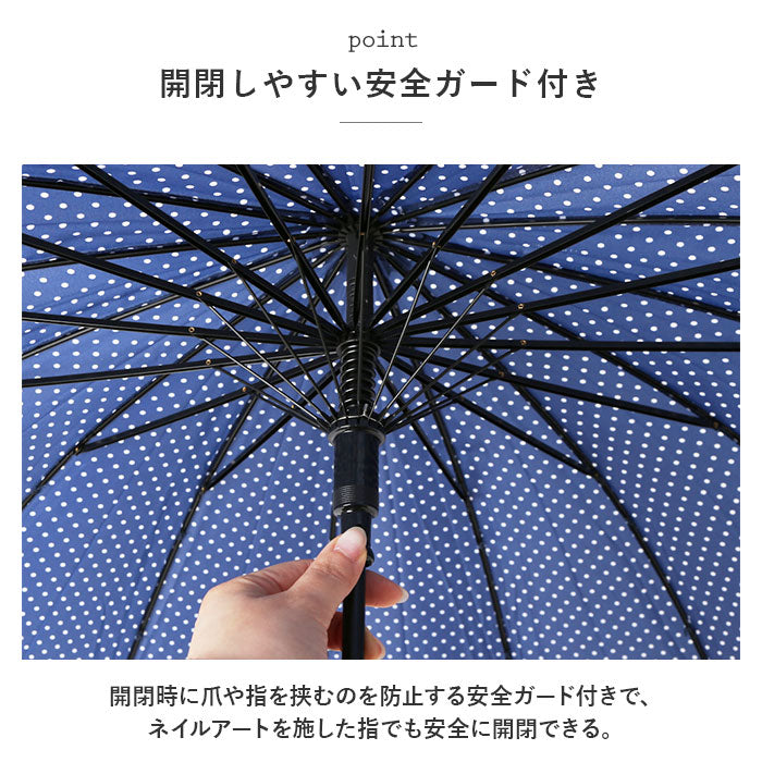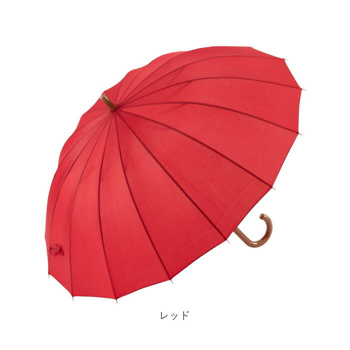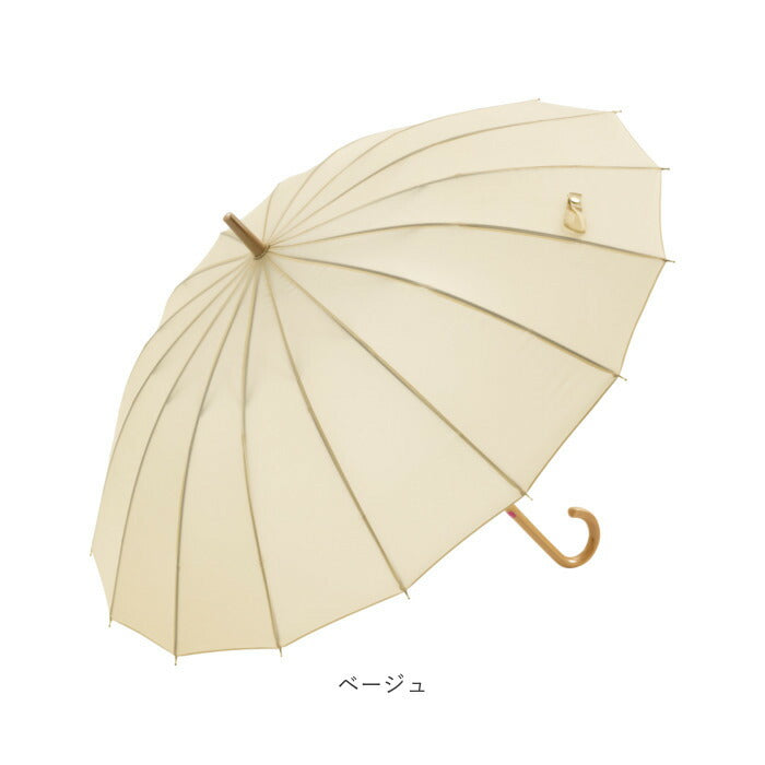 ・和傘のように見える16本骨構造は一般的な8本骨の傘と比べ、丈夫で雨に濡れにくい。