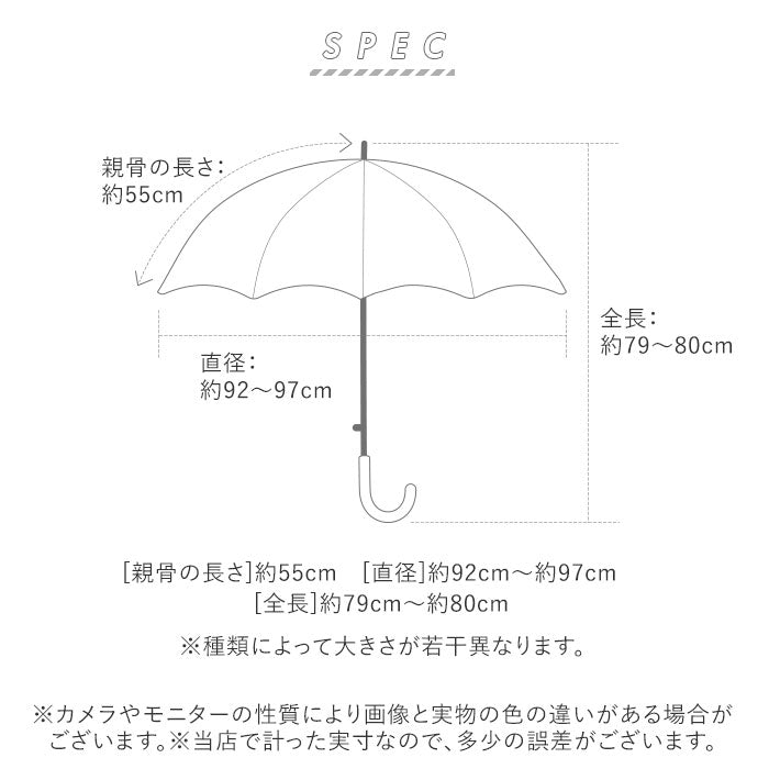 [親骨の長さ]約55cm/[直径]約92cm〜約97cm/[全長]約79cm〜約80cm