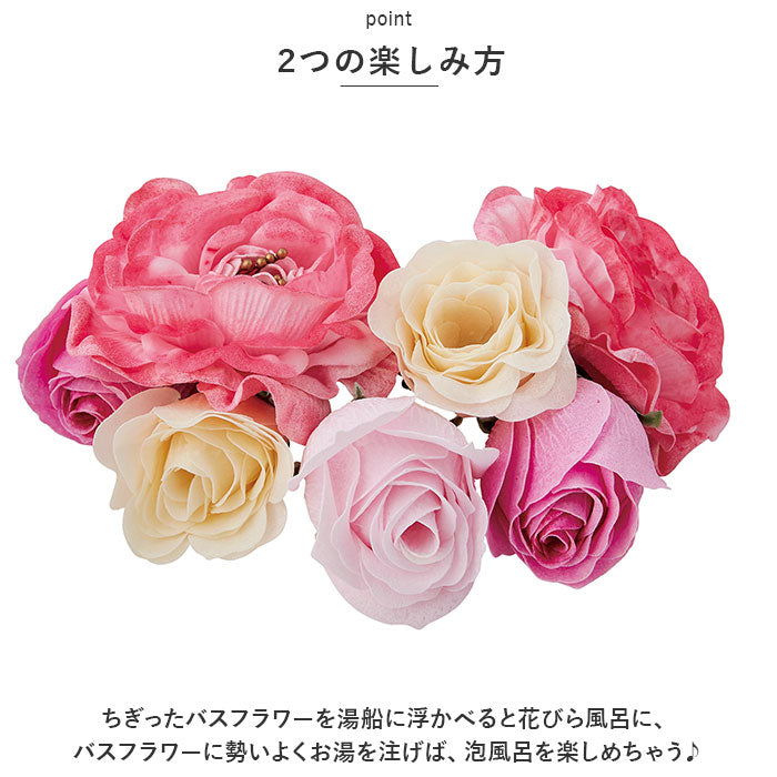 ・ちぎったバスフラワーを湯船に浮かべると花びら風呂に、バスフラワーに勢いよくお湯を注げば、泡風呂を楽しめちゃう♪