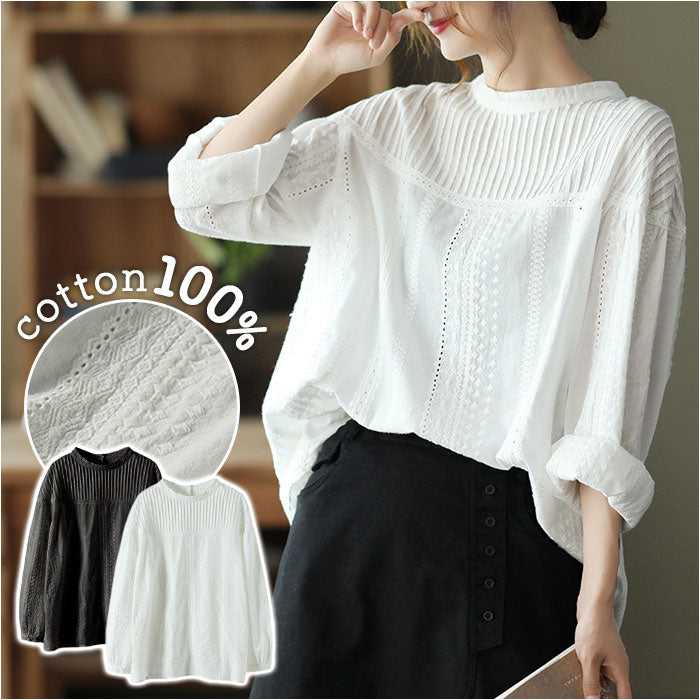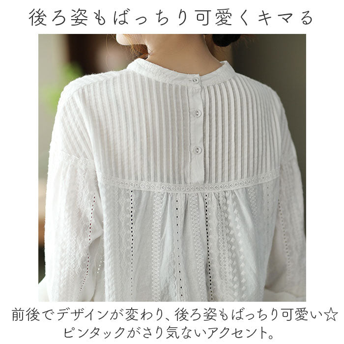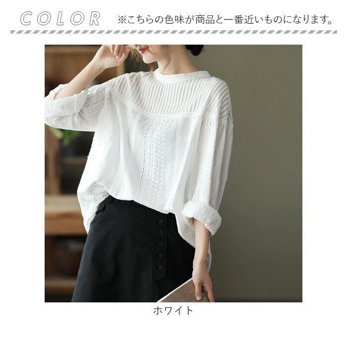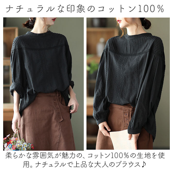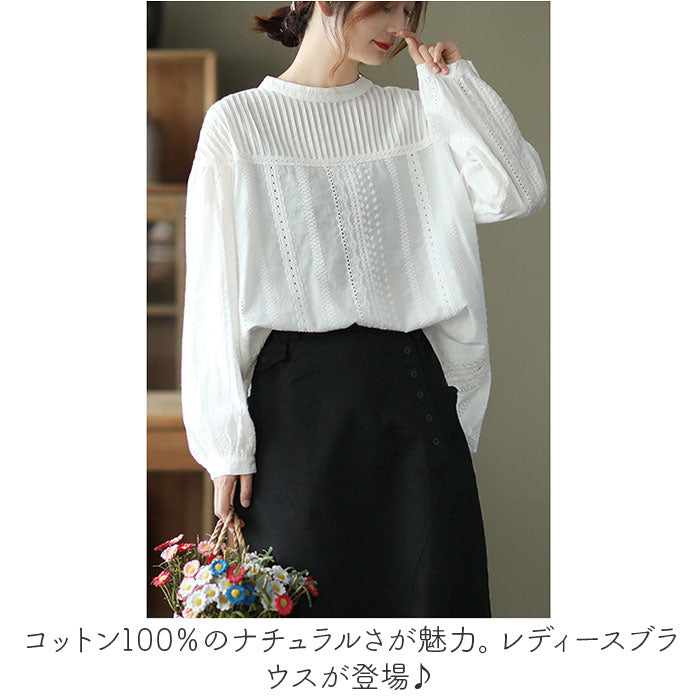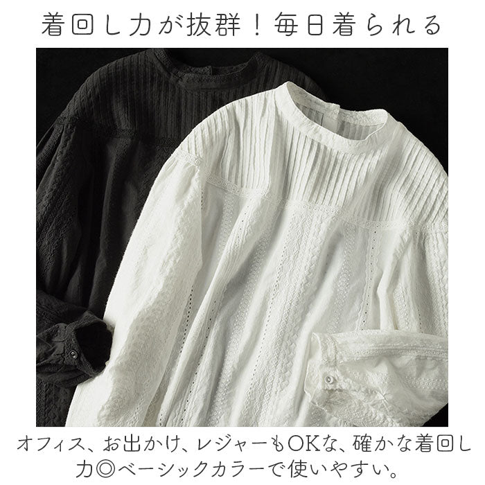 刺繍 ブラウス 長袖 レディース 通販 シャツブラウス シャツ 刺?ブラウス レースブラウス チュニック シャーリング 着回し ゆったり レース 柔らか やわらか フェミニン きれいめ