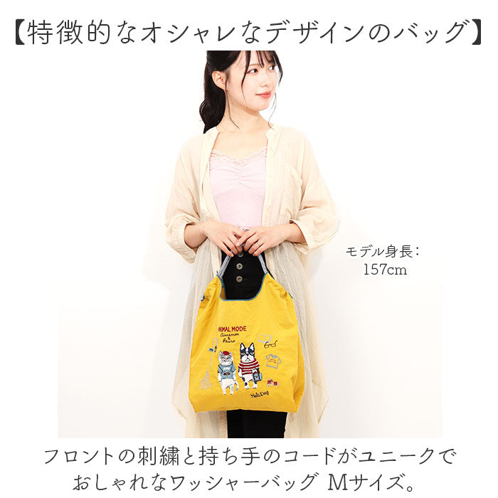 刺繍 ワッシャーバッグ M アニマル 通販 ワッシャーバック サブバッグ サブバック トート 肩掛け エコバッグ エコバック 買い物バッグ 買い物バック 買い物袋 ワッシャー 買物 買い物 袋