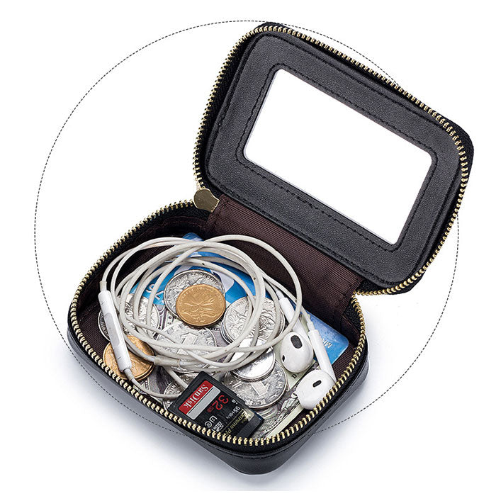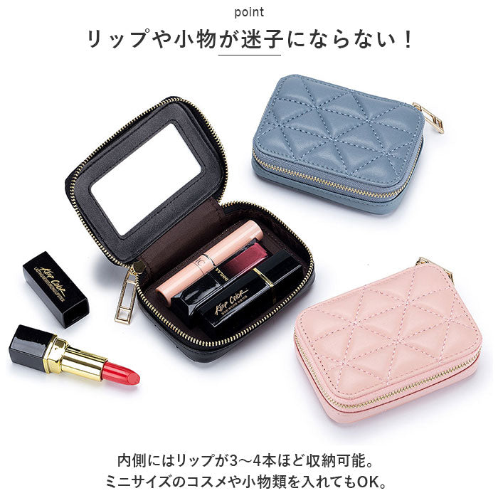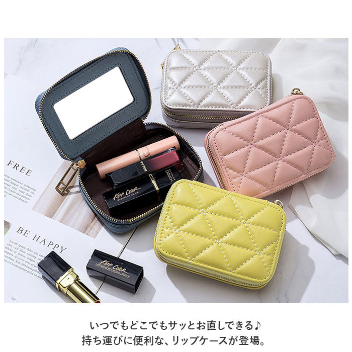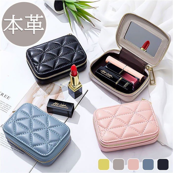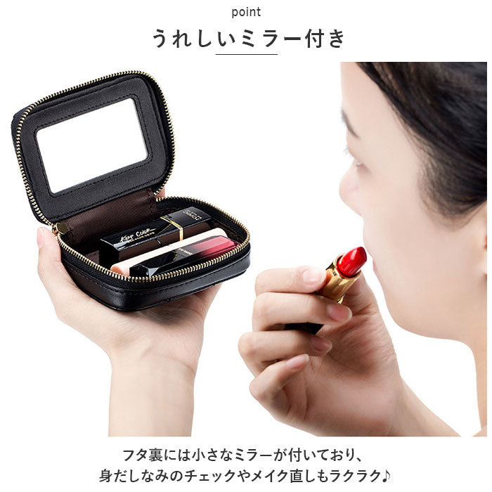化粧 ポーチ 鏡 付き 通販 リップ ケース ミラー付き 口紅 グロス ルージュ リップクリーム 化粧ポーチ メイクポーチ アクセサリーケース 小物入れ 本革 コンパクトサイズ 携帯 持ち運び