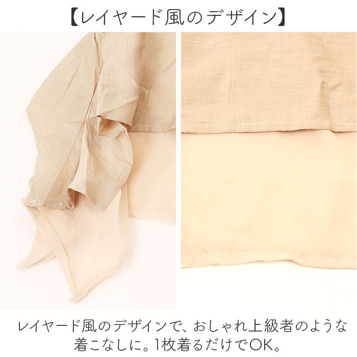 ・レイヤード風のデザインで、おしゃれ上級者のような着こなしに。1枚着るだけでOK。
